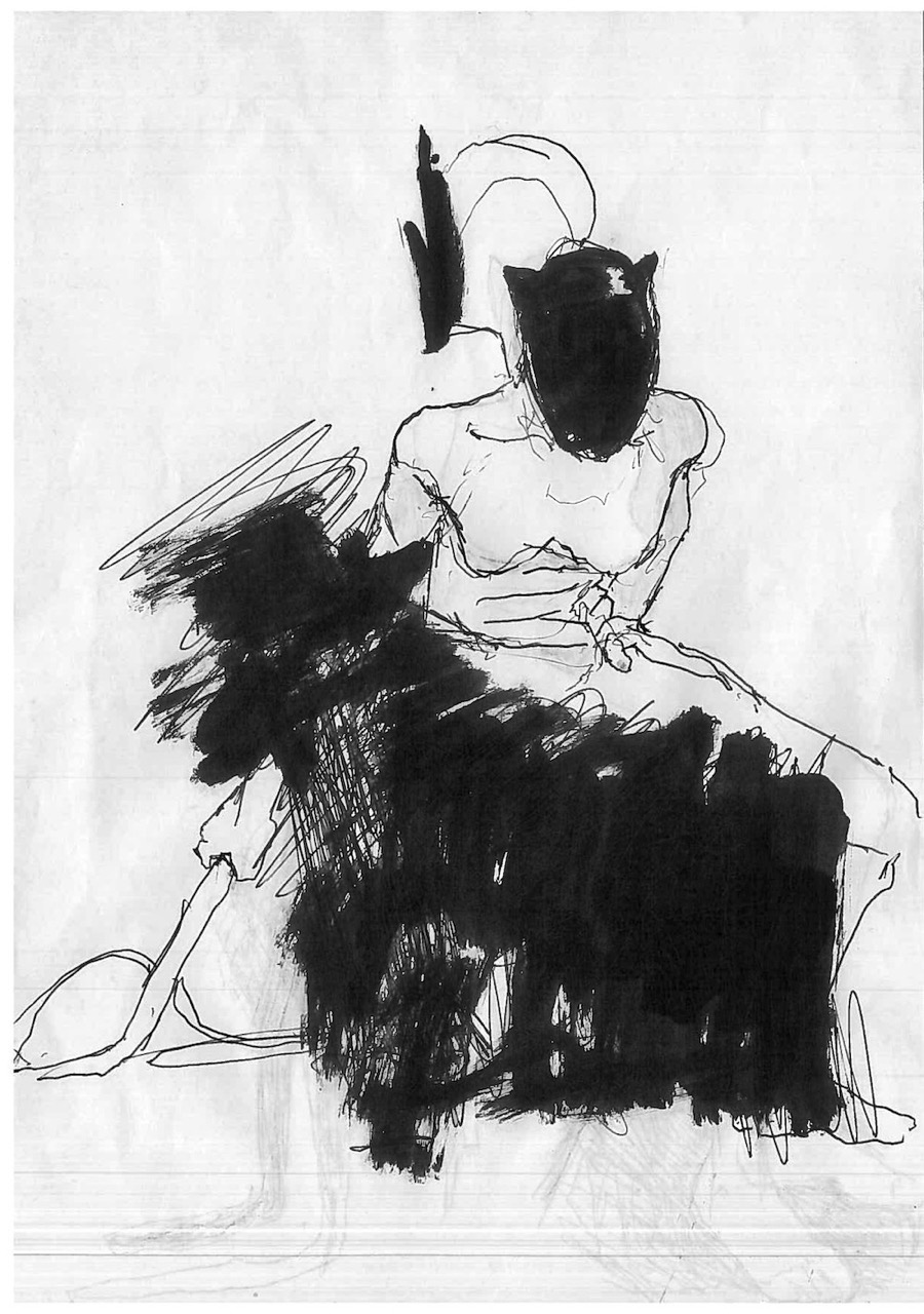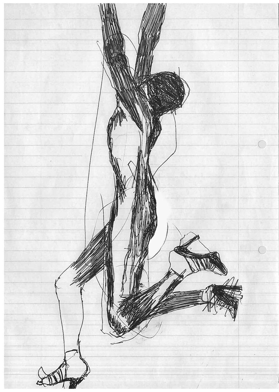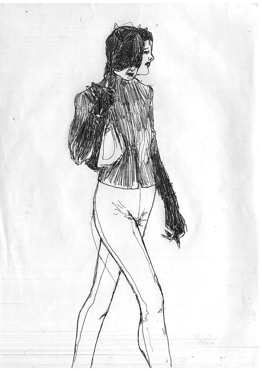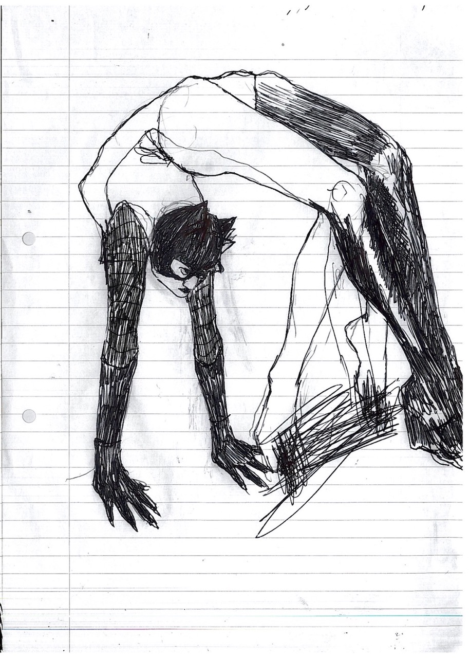 This body of 100 drawings is shown in the red light district of a city. An urban area where the revised original 1987 Catwoman, and countless other women, have their first well paid adult job. Through the drawings, a woman- who we can assume to be Catwoman- is seen busy with different activities, working towards an outcome that remains unclear. It is also unclear whether this figure is the same woman, or even the same character- but we trust it is catwoman by what she is wearing. What is very clear throughout though, is that she is always on her own. 100 depictions of a woman’s labour, jouissance and defence against unseen aggressors are ink drawn on A4 office paper.