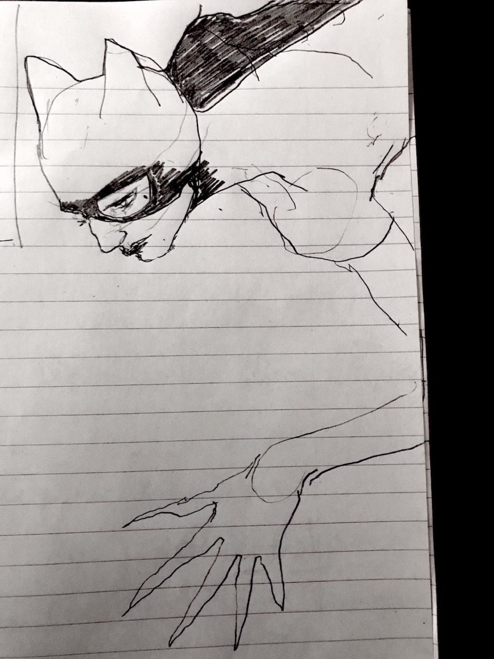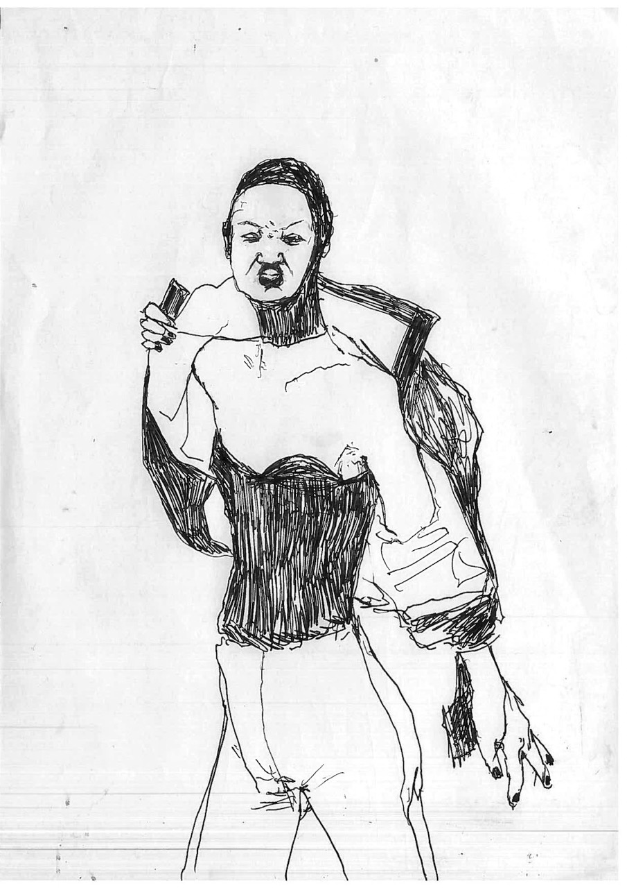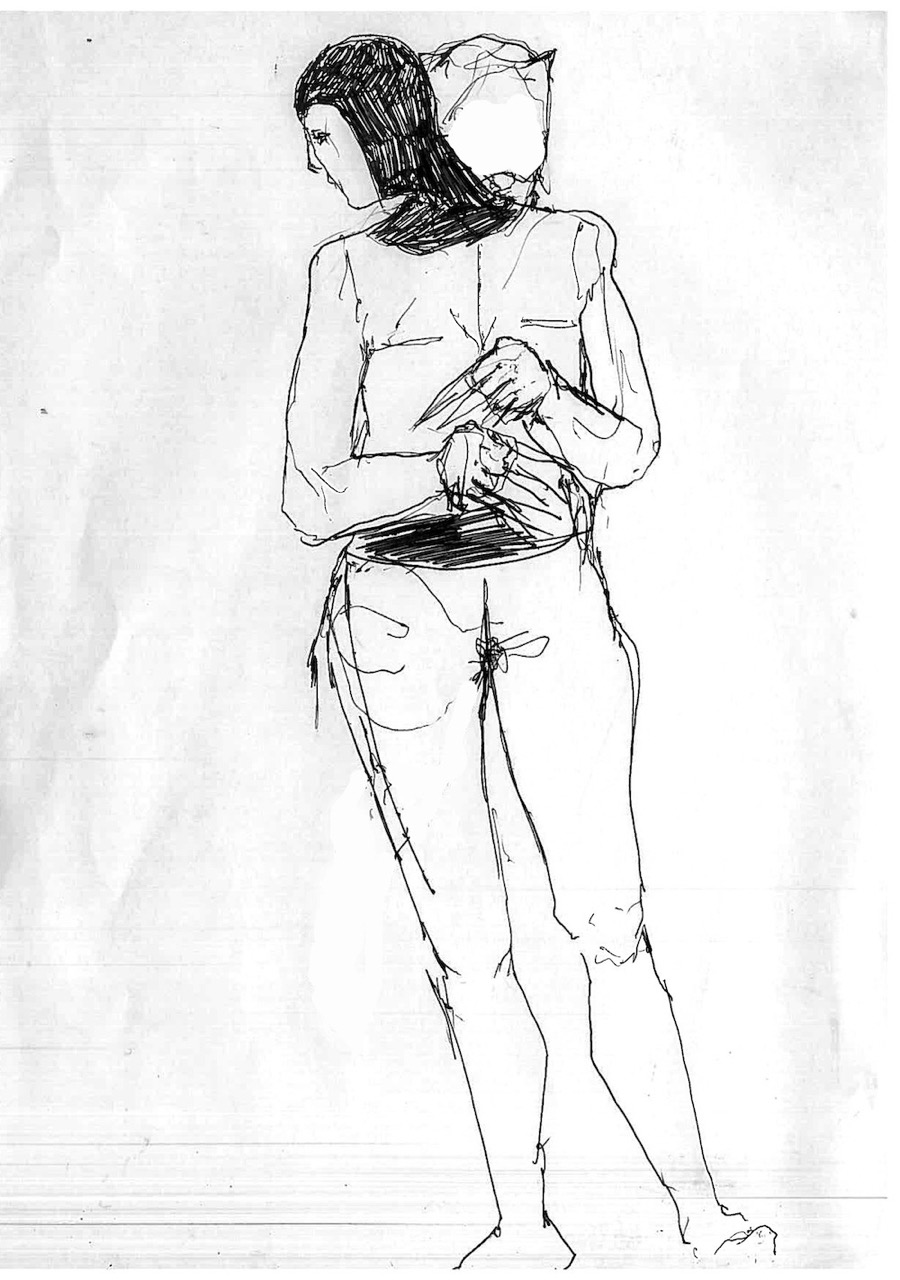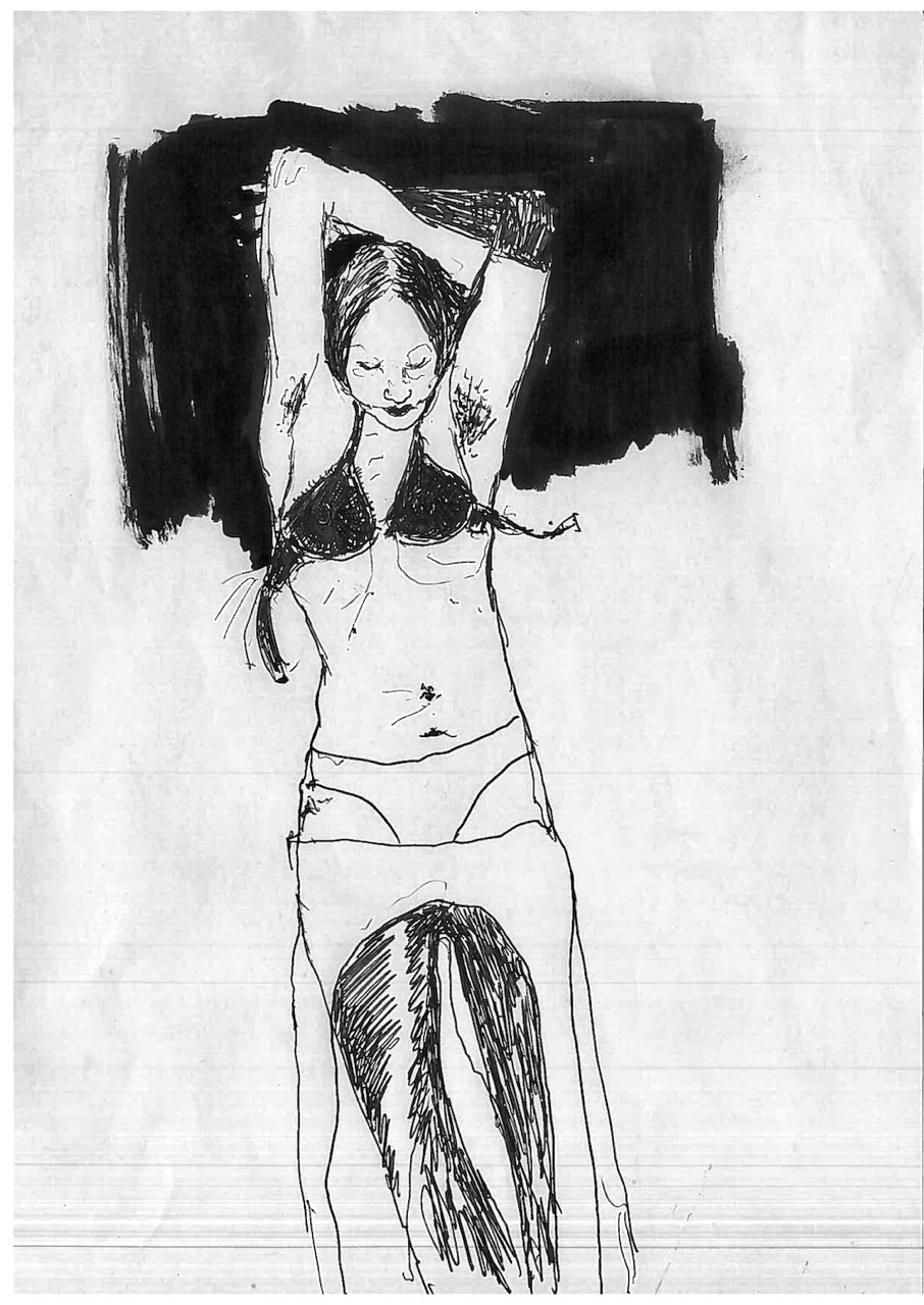 This body of 100 drawings is shown in the red light district of a city. An urban area where the revised original 1987 Catwoman, and countless other women, have their first well paid adult job. Through the drawings, a woman- who we can assume to be Catwoman- is seen busy with different activities, working towards an outcome that remains unclear. It is also unclear whether this figure is the same woman, or even the same character- but we trust it is catwoman by what she is wearing. What is very clear throughout though, is that she is always on her own. 100 depictions of a woman’s labour, jouissance and defence against unseen aggressors are ink drawn on A4 office paper.