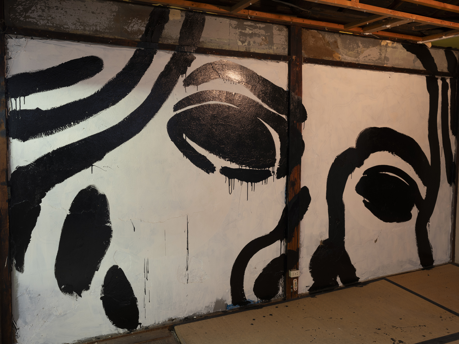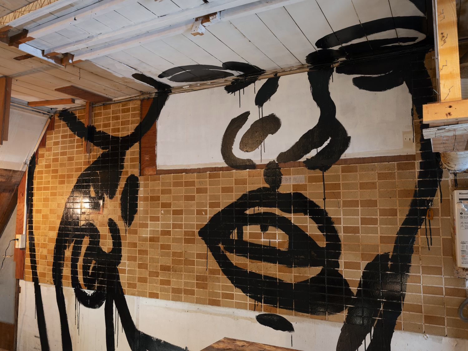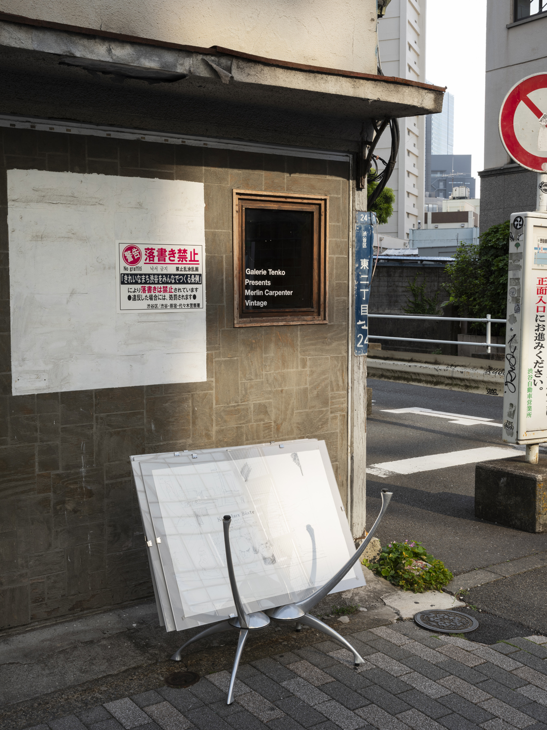 I particularly remember going to the new Tenko Presents when it was still a bar, as a teenager circa 2015 on a electro-swing night, which already during its peak was considered a bad genre that blends vintage jazz swing and house. Now, below the gallery, there’s a Barry McGee throw up. Alongside a large commission he did under the Ebisu rail tracks. This kind of commissioned street art is the epitope of gentrification. Probably his little graffiti throw up was driven by this guilt he feels.